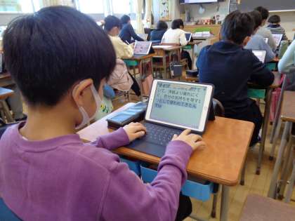 タブレットを使うことで、友達の感想文をたくさん読むことができ、また、メッセージも手軽にたくさん送ることができます。