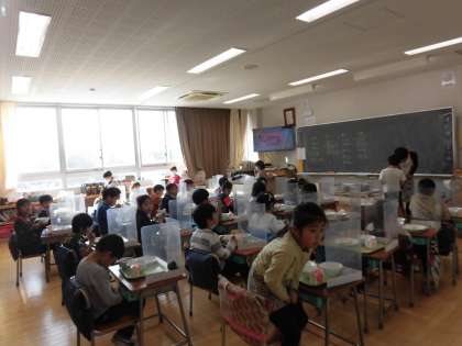 1年生の給食の時間です。