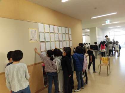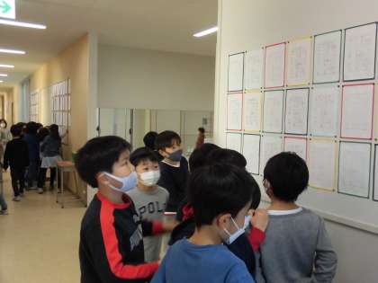 2年生が、1年生の書き初め展を