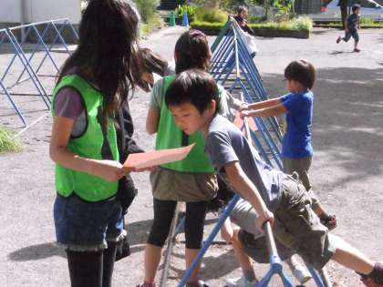 体力向上の取り組み、10月は2,3,4年生の鉄棒チャレンジです。運動委員会の子どもたちが、チャレンジカードを持ってきた下級生にアドバイスしています。少しでもたくさんの技ができるように、子どもたちは目を輝かせていました。