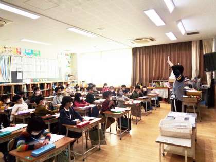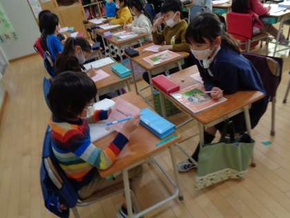 授業の最後は、二人組になって友達のよいところをカードに書いて渡しました。「いつも笑顔であそんでいてすてきです。」カードには、相手のことをよく考えていることが伝わってきました。そんな温かいメッセージをもらって、とってもうれしそうでした。