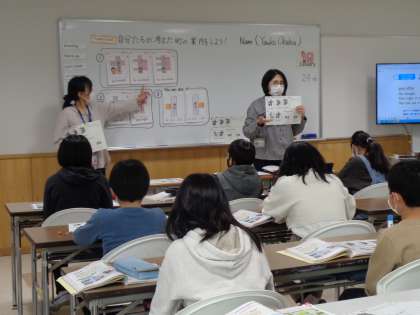 「turn left」「turn right」など英語支援員の正しい発音や、先生と英語支援員の英語のやりとりなどを聞くことで、日常会話に近い自然な英語を学べます。