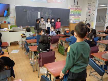 1年生「はる なつ あき ふゆ」の歌の表現発表会です。