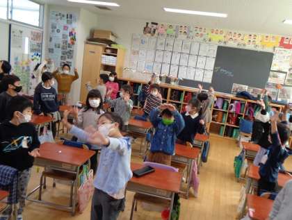 一生懸命練習してきた成果をみんなに伝えます。少し緊張していたけれど、友達と気持ちを合わせて表現している姿がとってもすてきでした。見ていた友達から「よいところ」を伝えてもらって嬉しそうでした。
