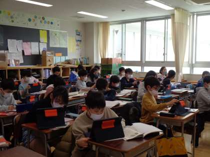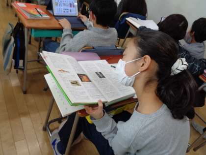 黙々と調べていて、教室は静まり返っていました。素晴らしい集中力です。