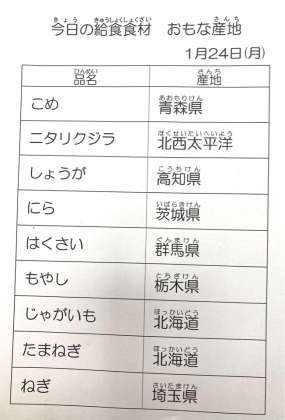 1月24日 今日の給食
