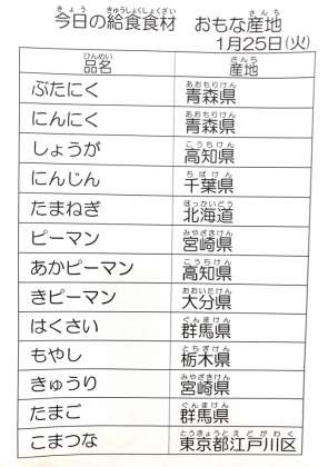 1月25日 今日の給食