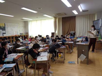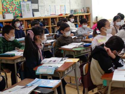 4年生の様子です。日本の伝統工芸を継承していく取り組みについて学習していました。日本の伝統工芸に感動して、その技術を学んでいる外国の方も増えてきていることに子供たちは関心を示していました。
