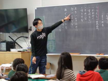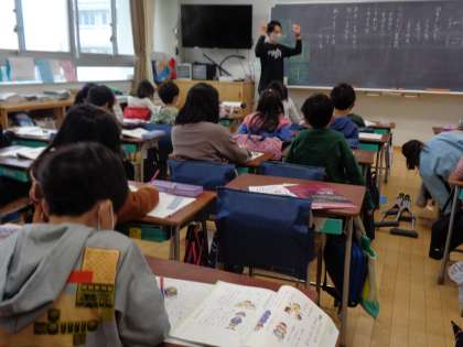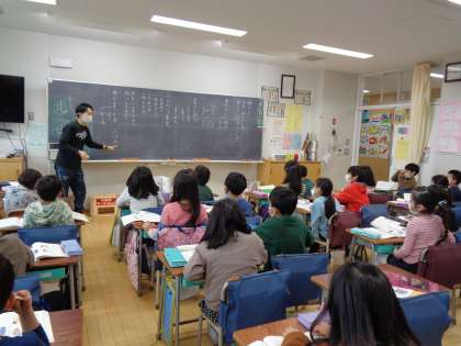 2年生の国語です。「にた意味の言葉とはんたいの意味の言葉」の学習です。たくさんの言葉を見つけ、語彙を増やしていました。