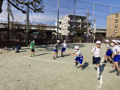 学習した種目のコツを考えて、元気いっぱいに走り抜きました。