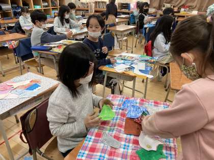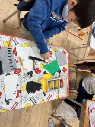 様々な形にクレヨンを使って一生懸命色を塗っていました。