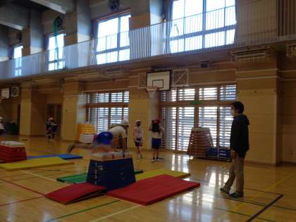 タブレットを使って、跳ぶところを動画で撮影していました。