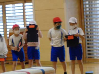 跳び終わると、動画を見て、跳び方の確認をしました。