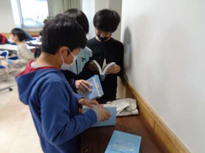 辞典で単語を調べていました。「あこがれの人」を紹介するためにみんな一生懸命です。