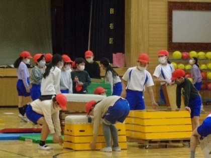 技のポイントを考えたり、片付けをしたりと、みんなで協力して学習していました。