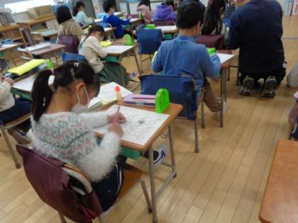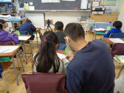 1年生の様子です。「とけい」の問題を解いていました。時計を読むことは、生活に欠かせません。みんな一生懸命取り組んでいました。