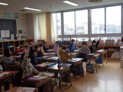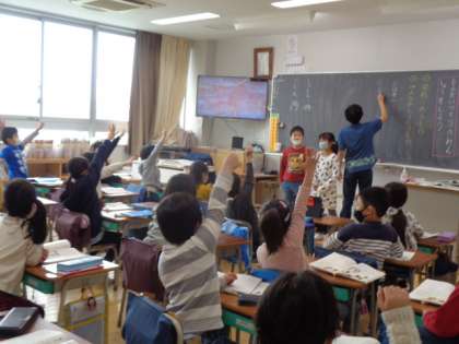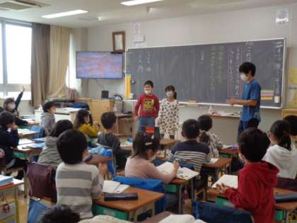 1年生の話す聞くの単元です。今日は、練習。問題を出したり、答えたりとても楽しそうでした。