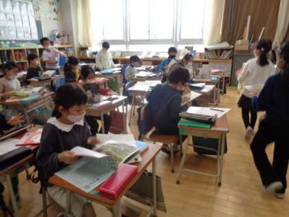 1年生の国語「どうぶつの赤ちゃん」の説明文を読み取りが終わりました。どうぶつの生まれたときの様子や大きくなっていく様子は、動物によって違うことを知り、他の動物も調べてみよう!となりました。