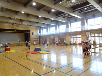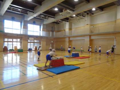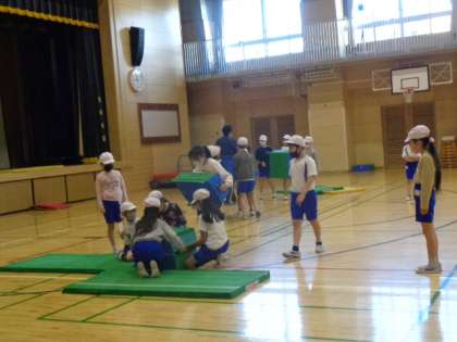単元のまとめに近付いてきました。技能が高まってきたので、いろいろな場を準備して、様々な技に挑戦します。