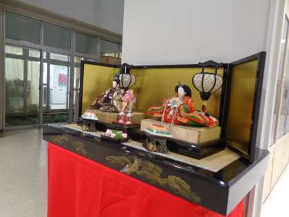 第1昇降口から入ったところに主事さんが雛飾りを飾っていました。