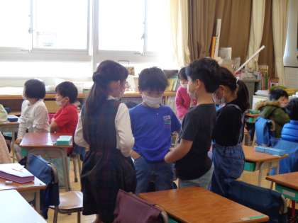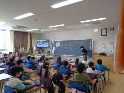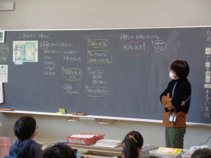 1年生が1年間の振り返りをしていました。「もうすぐ2年生」の単元です。