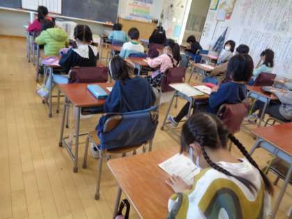 朝の時間です。音楽室で朝練習をしていたり、係の子が読み聞かせをしていたり、朝学習をしていたり・・・各クラス時間を大切に使っています。