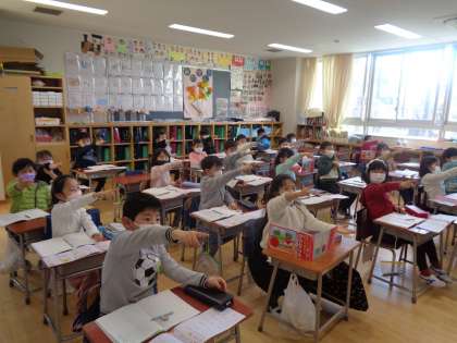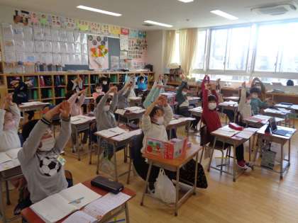 1年生で最後の「空書き」だと思うとみんなの気持ちもいつも以上に揃いました。力いっぱい「力」を書きました。
