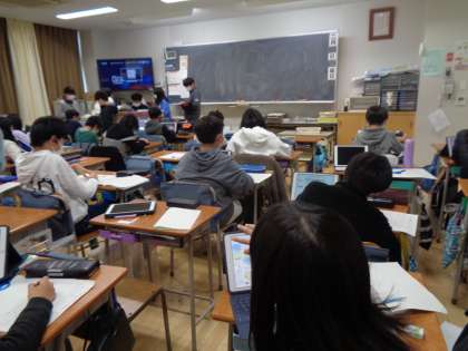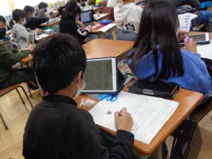 ロイロノートで打った下書きをレポート用紙に清書していまいした。タブレットで打ち込むだけでなく、ちゃんと手書きで仕上げているところから、担任の先生が大事にしていることを伺うことができます。