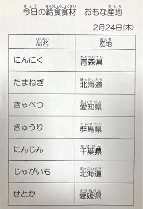 2月24日 今日の給食