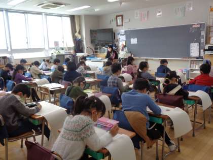 1年生が朝学習にとても集中して取り組んでいました。しっかりとがんばっています!!