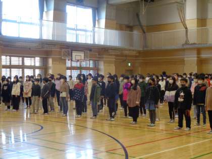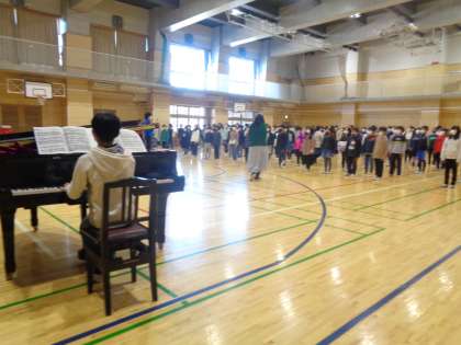 5年生は「明日へ向けて」という歌の合唱です。とてもきれいな歌声が響いていましたが、先生達は、5年生達ならまだまだ声が出ると言っていました。期待されています。