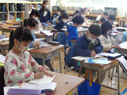 学習のまとめの時期になりました。自分の課題に集中して取り組む1年生です。黙々と取り組み、もうすぐ2年生を感じさせる立派な姿です。