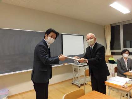 薄井校長へ手渡されました。