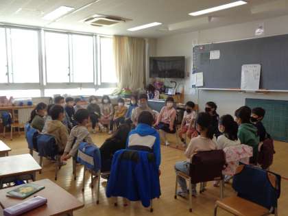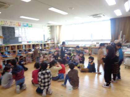 低学年は室内遊びでした。クラス遊びをしてみんなで楽しんでいます。