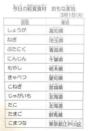 3月1日 今日の給食