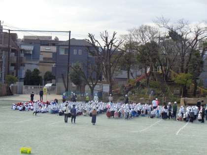 みんなが避難し、人数の報告が終わって、全員の安全が確認された後、副校長先生からお話がありました。「訓練はいつでも100点でなければなりません。そうでないと、本当の地震の時に命を落とすことになるからです。」自分の安全は自分で守っていく。山野小学校の全員がしっかりと理解しました。