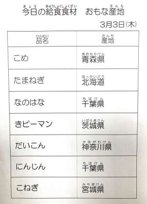 3月3日 今日の給食