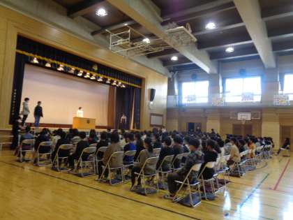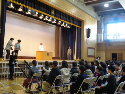 今日は、証書授与の練習をしていました。証書の受け取り方、礼の仕方、目線、立ち位置など覚えることはたくさんあります。先生が一つ一つ確認しながら、声を掛けていました。厳粛な雰囲気です。