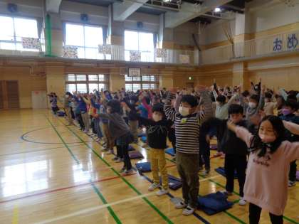 最後に、言葉と歌を全部通してやりました。1年生の「ありがとう」の気持ちが届いて、見ていた先生が拍手をしてくれました。きっと6年生みんなにも届くと思います。がんばれ!1年生!!