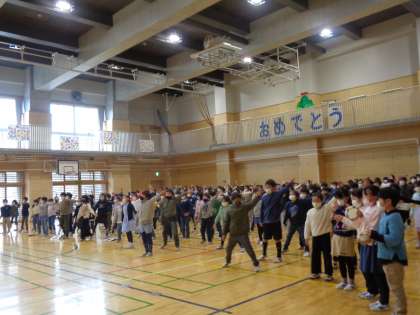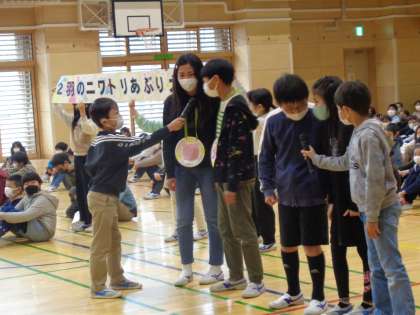 と3年生の言葉に6年生はどよめいていました。早口言葉対決!!お題をどちらが早く言えるかの勝負です。3回やって、勝ったのは・・・6年生!!圧倒的な早さでした。
