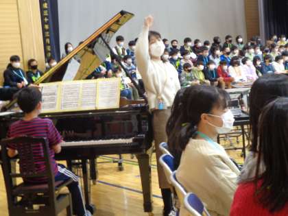 そして、「10才決意の会」で歌った歌の替え歌「卒業を迎える6年生に」を歌いました。4年生のすてきな歌声と思いのこもった言葉に6年生は思い出に浸っていました。