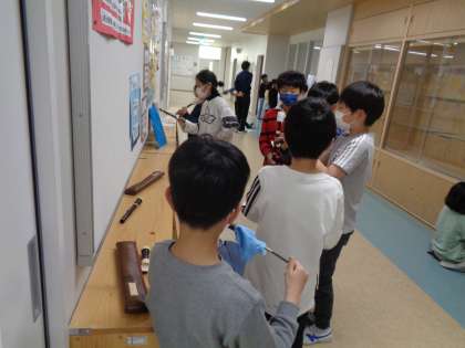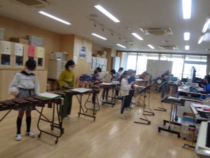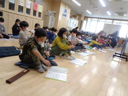 3年生の様子です。リコーダーで「ブラックホール」という曲を演奏していました。楽譜を見ながら、指遣いを確かめながら吹いていました。その後、「パフ」の合奏練習をしました。