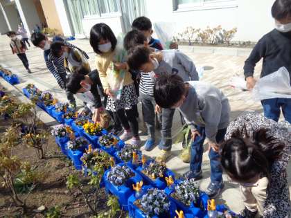 毎日水やりをしている子の花の数が多いことに気づきました。「お花がありがとうっていって咲いているんだね。」