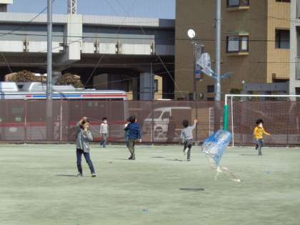 今回は2回目なので、風に凧をのせて揚げる子がたくさんいました。経験を重ねるごとにコツをつかんでいました。どうやったら凧が揚がるのかを考える・・・遊びながら自然と風力を学んでいます。この経験が、いずれ理科の学習につなっがっていくのでしょうね。