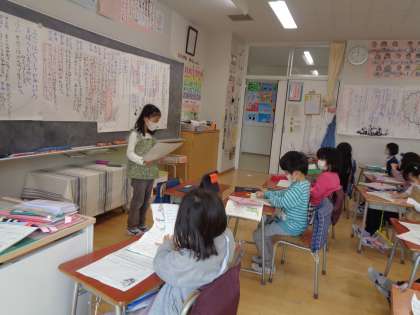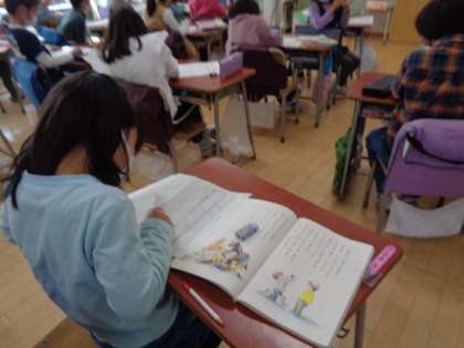 1年生の様子です。「ずうっと、ずっと大すきだよ」の物語のまとめです。
