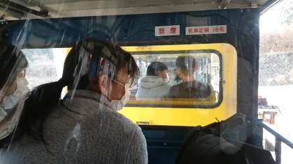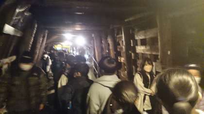足尾銅山に着きました。トロッコ電車に乗って、坑道に入りました。