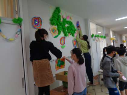 明日入学する1年生を思い浮かべながら、教室をきれいに飾り付けました。