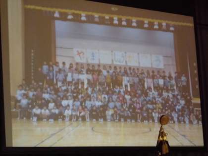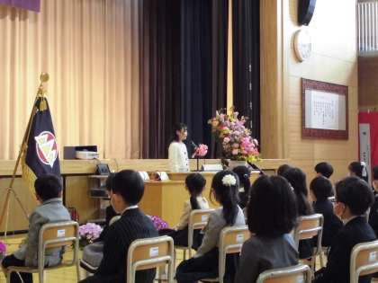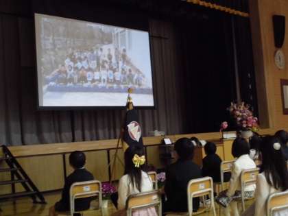 6年生からは、給食がおいしいこと、山野小の素敵な場所について 教えてもらったり、「困ったことがあったら、いつでも言ってください。」 などと優しく話してもらいました。 また、在校生(新2年生)からの出し物は いろいろな場所で事前にビデオに撮った ものです。 1年生は、じっくりと見ていました。 山野小での生活が楽しみになってきたようです。
