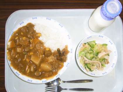 昨日:ジャーマンカレーライス・牛乳・福神漬け・ハムと大根のサラダ