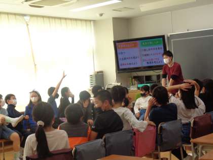 クラスが仲良くなるためにクラス遊びで何をする話し合っていました。テレビ画面には、意見の伝え方や話の聞き方が映されていました。話し合いの仕方を身に付けさせたい先生の思いが伝わってきました。